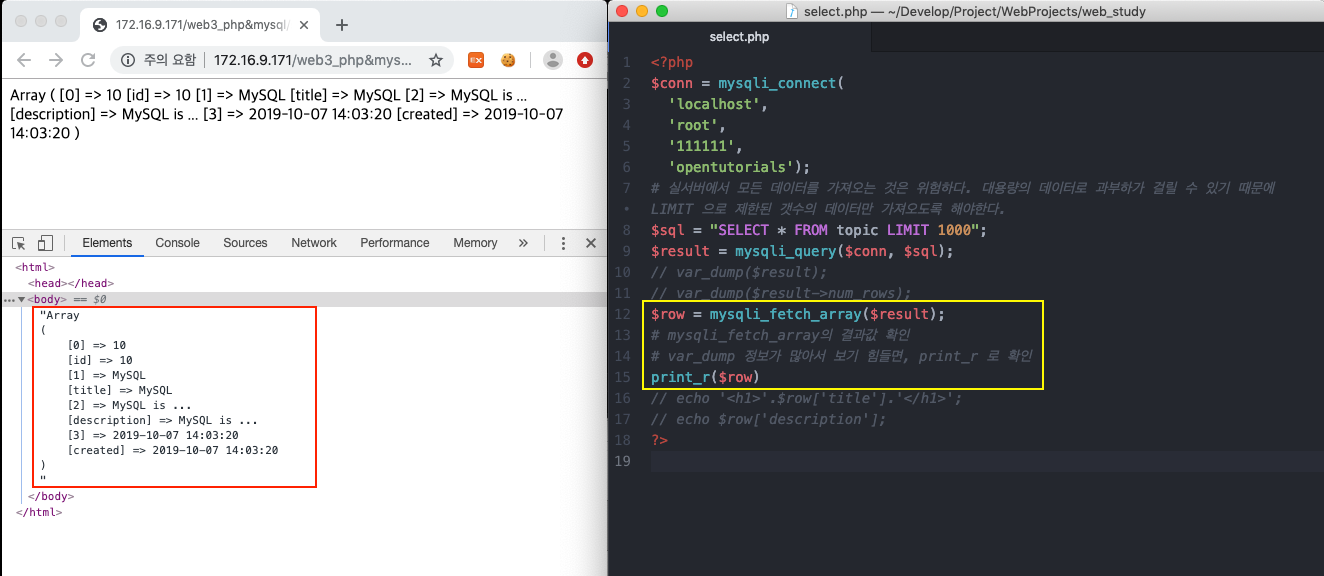mysqli_fetch_array를 이용해서 mysql 서버가 응답한 결과를 배열로 변환하는 방법