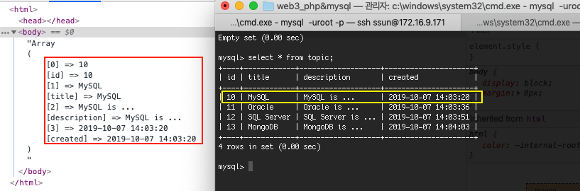 topic 테이블에 데이터 저장 후, 이 데이터들을 select.php 파일에서 출력할 것이다.