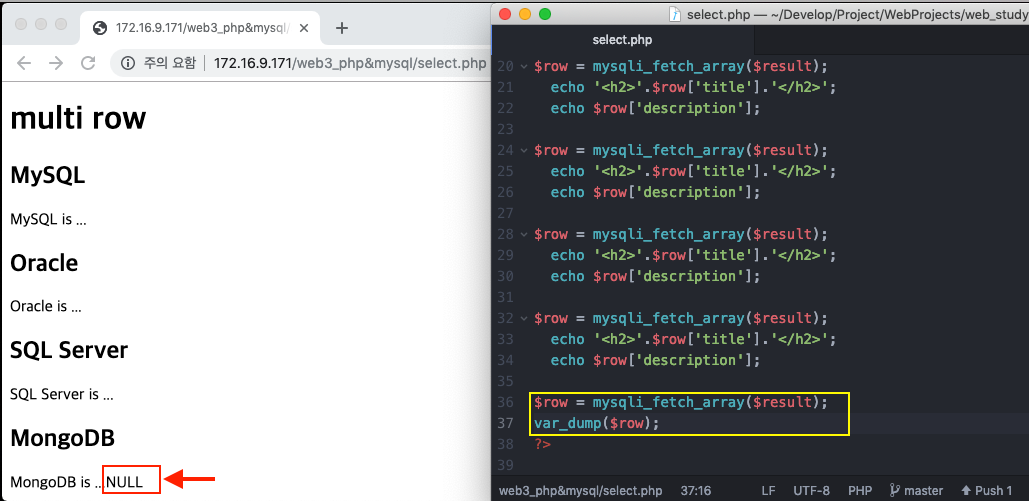 그렇다면 $row 라는 데이터에 무엇이 담겨있는지 구체적으로 확인해보자.