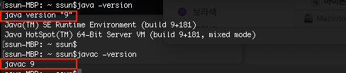 java -version , javac -version 후 버전 정보가 제대로 나오면 설치가 성공적으로 된 것이다.