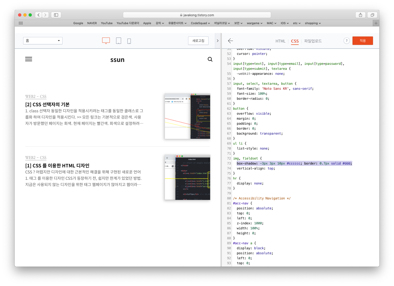 1. tistory 관리자 모드 > 스킨 편집 > HTML 편집 > CSS 에서