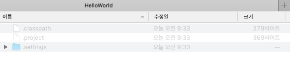 ( command + shift + . : 숨김파일 보이기) 이클립스가 필요해서 만든 디렉토리 및 파일이 생성되어있는 것을 볼 수 있다.