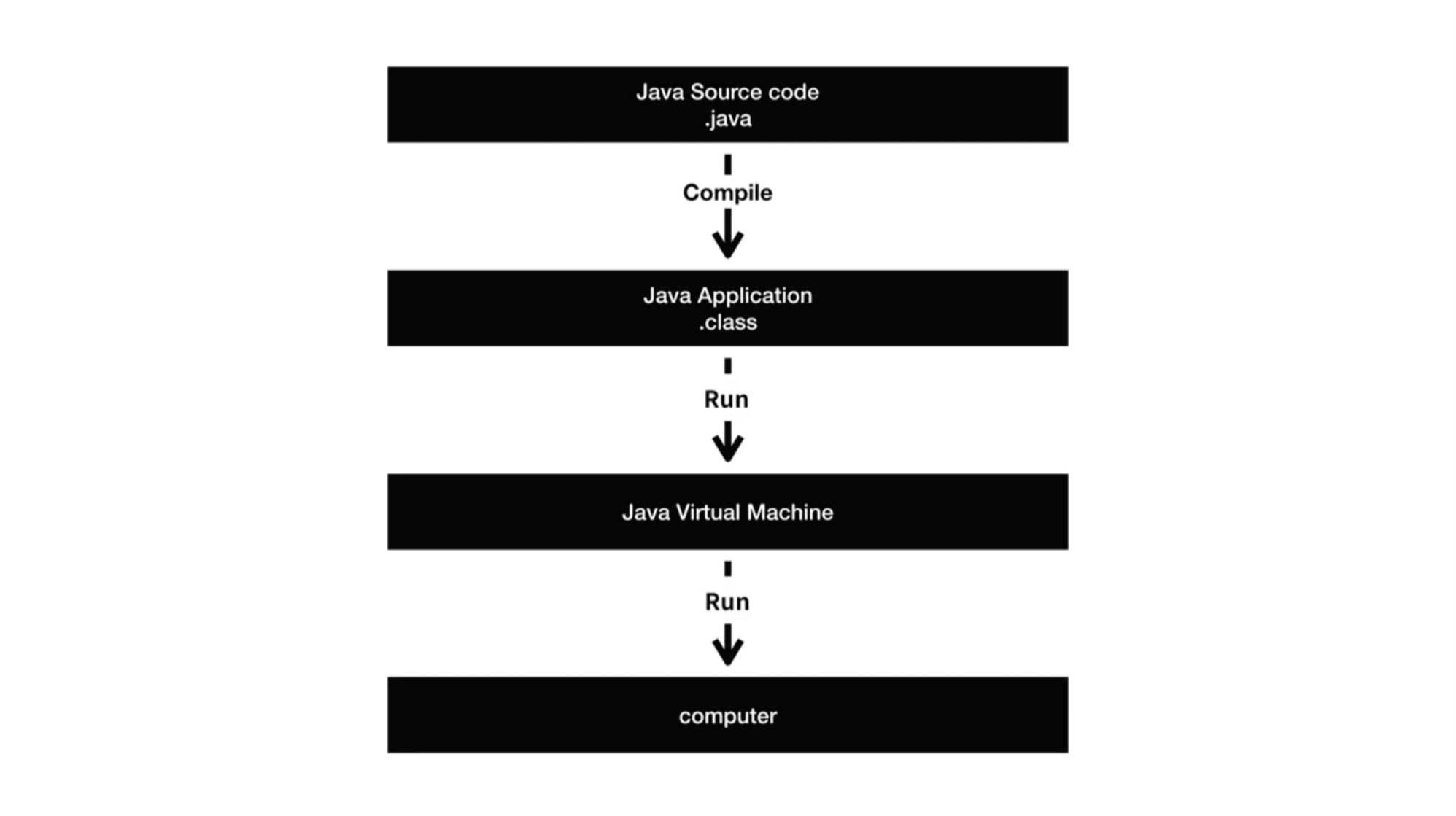 여러가지 설치파일 중, JVM(Java Virtual Machine)이라는 프로그램이 컴퓨터에 깔려있는 상태이다. - 하고자하는 일을 담은 확장자가 .java 인 파일을 작성 했다.