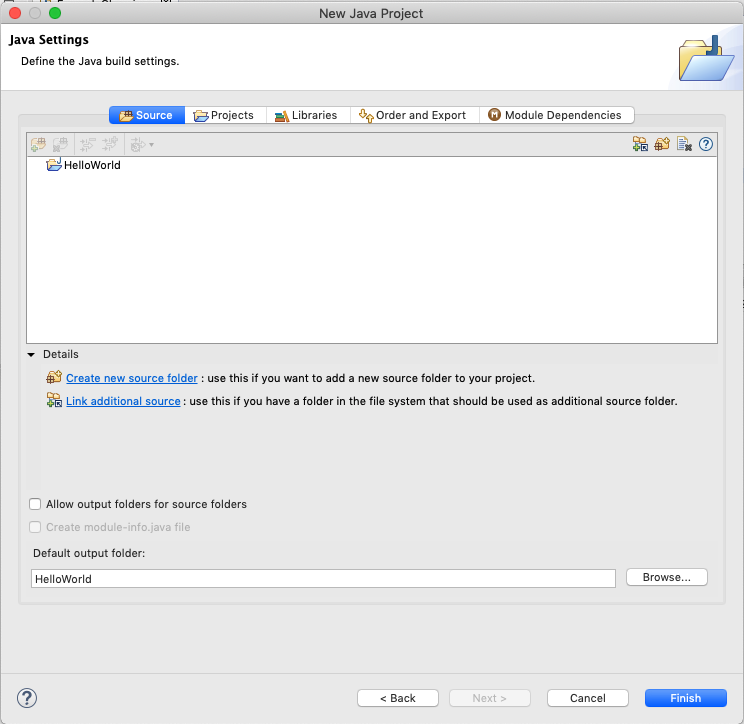 Default output folder : HelloWorld "컴파일된 결과는 'HelloWorld' 라는 프로젝트 디렉토리 밑에 생성될 것이다."라는 의미