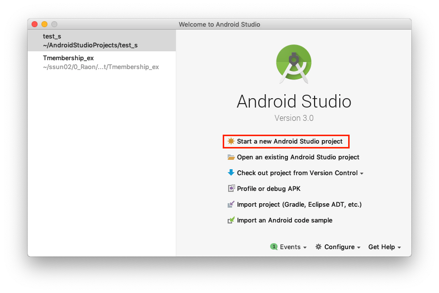 Choose your project : 만들고자 하는 안드로이드 앱에 따라 기본적인 코드를 제공해주는 화면