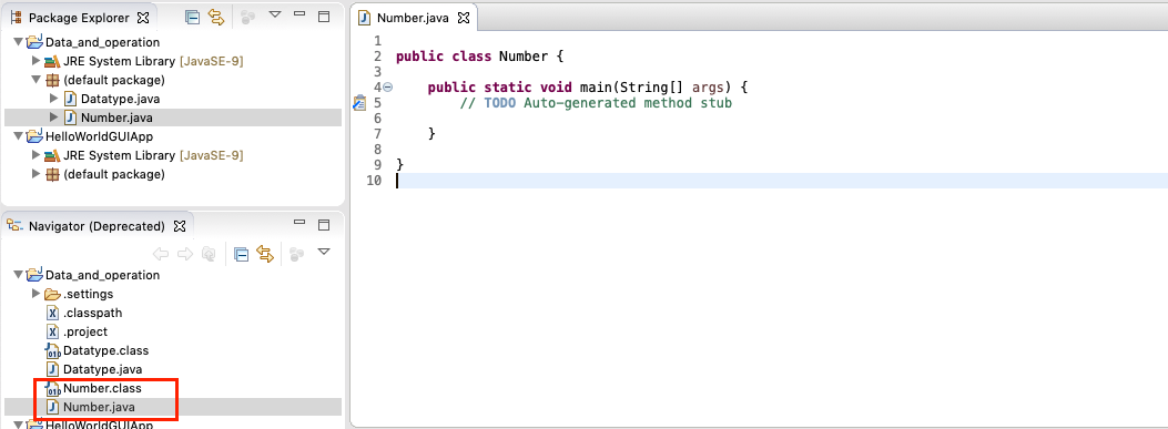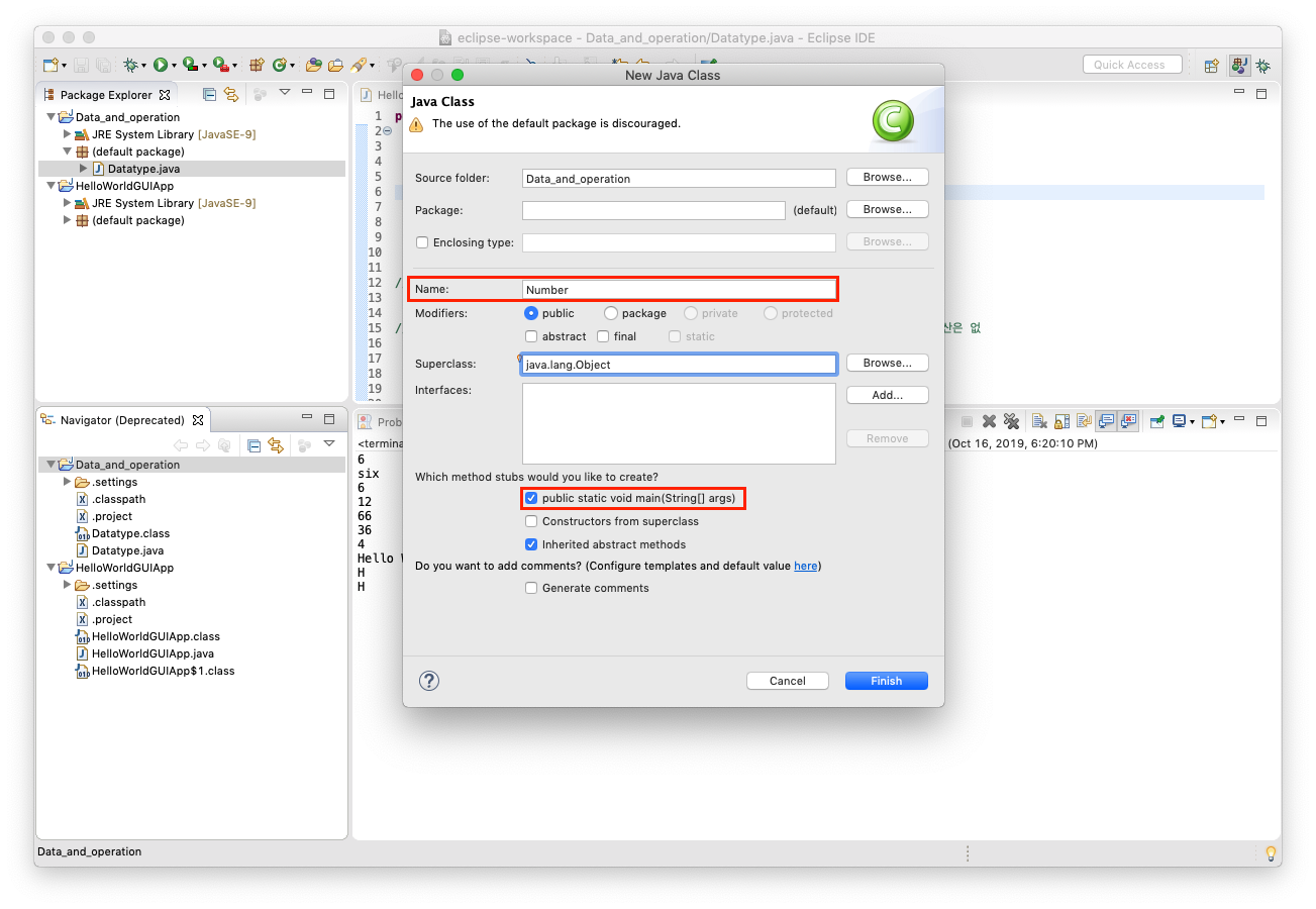 Number.java 파일과 main이라고 하는 메소드가 생성된다.