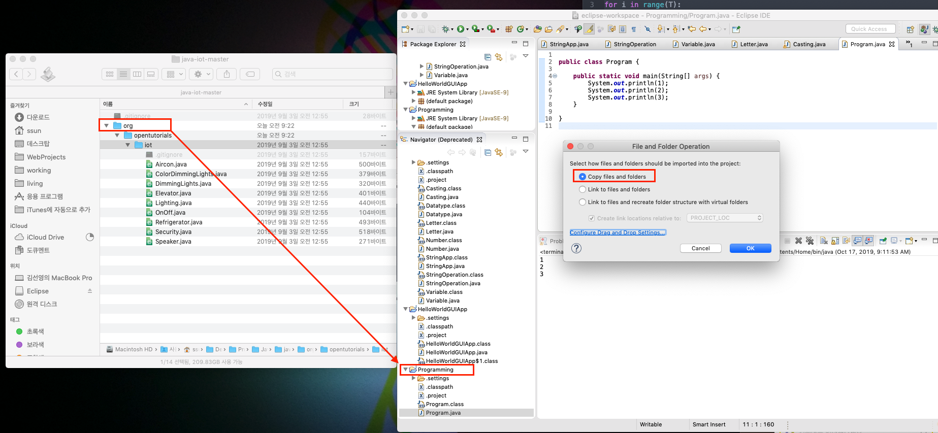 가장 심플한 방법은 'org' 디렉토리 전체를 우리의 프로젝트 폴더로 복사한다. (드래그 in Finder and 드랍 in Eclipse)