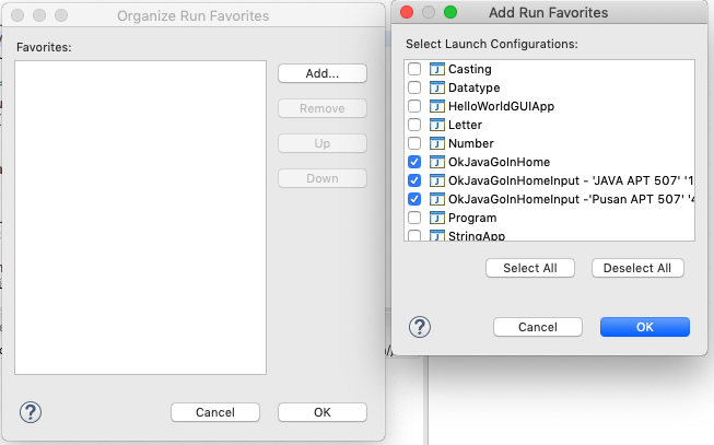 [Organize Favorites ...] > [Add] > 자주 사용하는 프로그램을 선택하여 목록에 추가