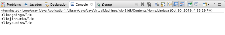 각 사람의 이름 앞뒤로 li 라는 html 태그를 붙여서 출력하려고 한다.