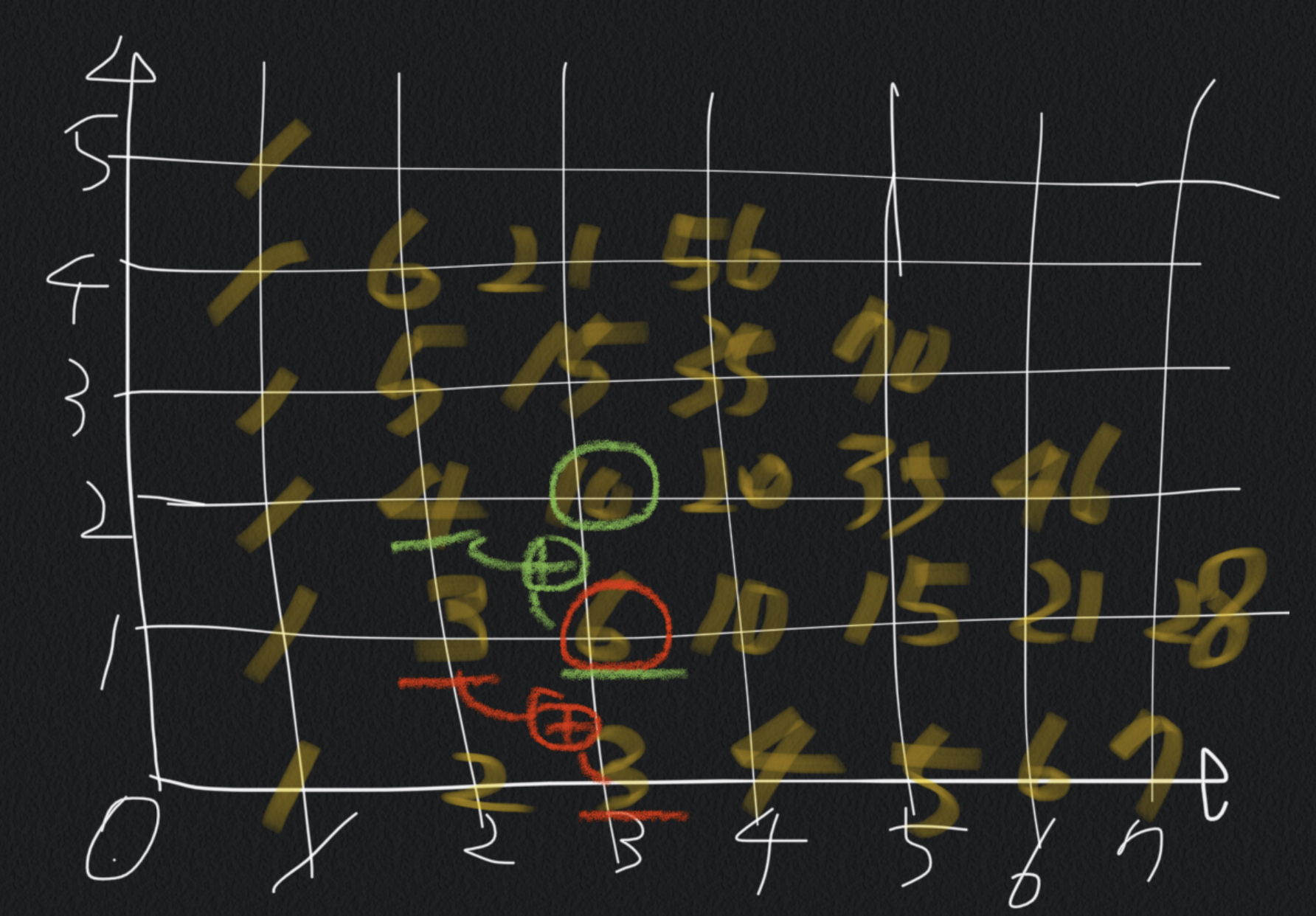 apt[w][h] = apt[w][h-1] + apt[w-1][h]
