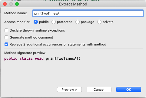 [Preview>] 를 통해서 리팩토링될 코드를 미리 확인할 수 있다.