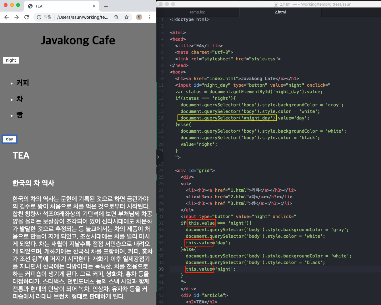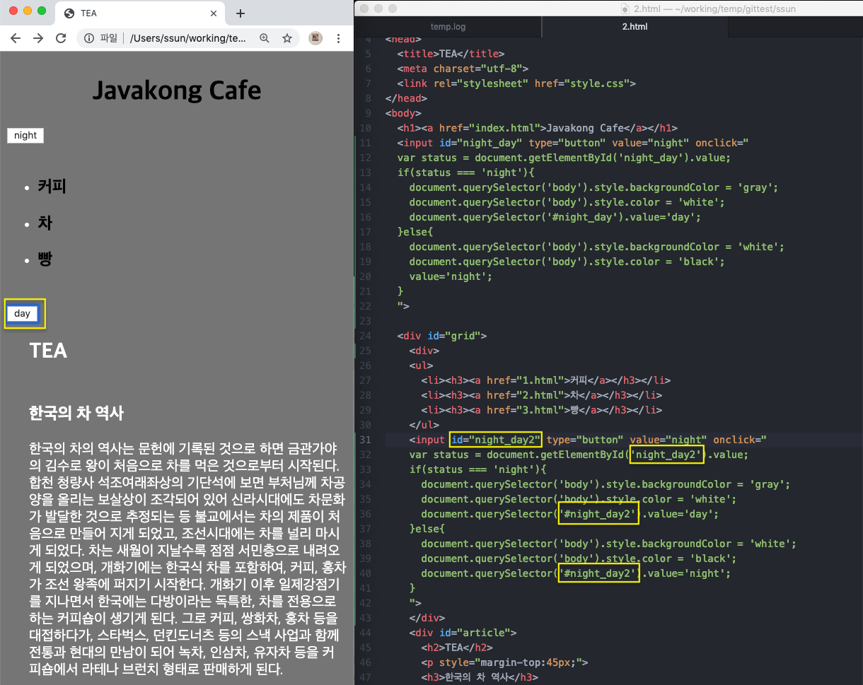 붙여 넣은 두 번째 버튼의 id 값을 'night_day2' 라고 수정하면 정상적으로 동작한다.