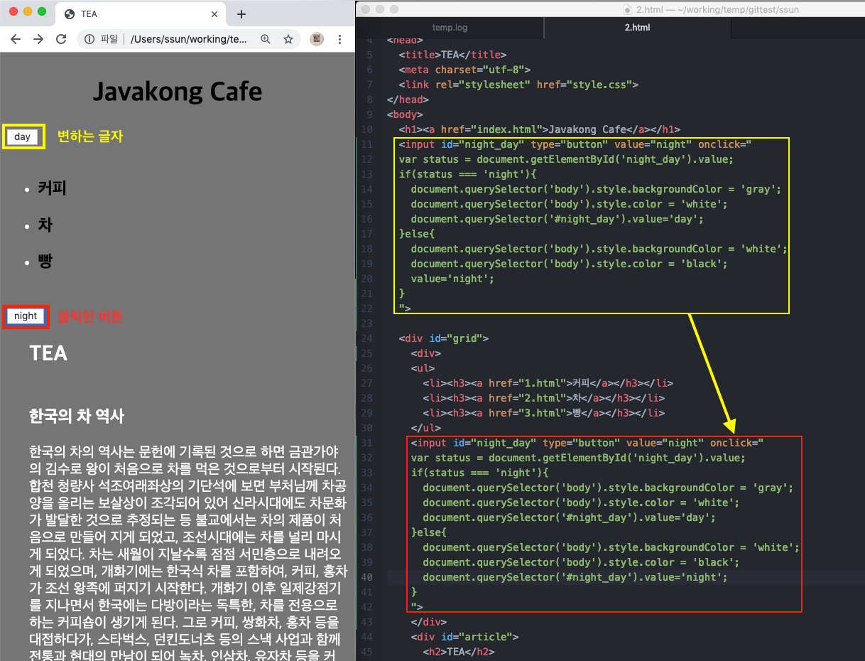 night_day 버튼을 복사해서 웹페이지 하단에서도 동작하도록 하고 싶다.