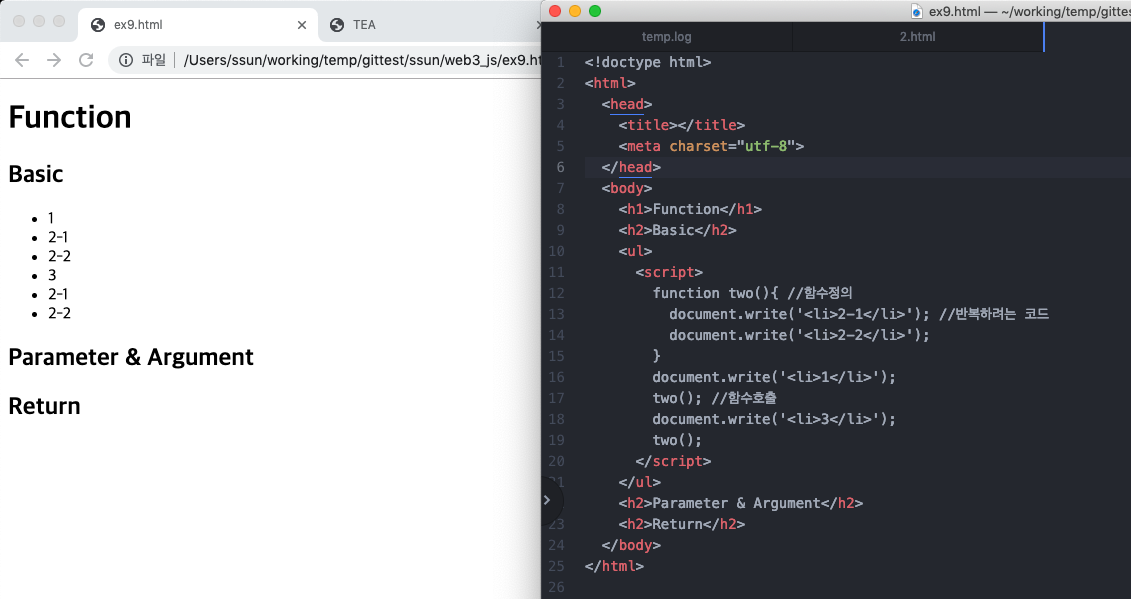document.write('<li>2-2</li>'); // 반복되는 부분(2)