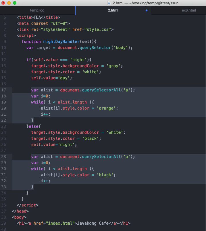 target.style.color = 'white'; //한 줄 중복이지만, 의미를 명확히하기 위해 함수화 추천
