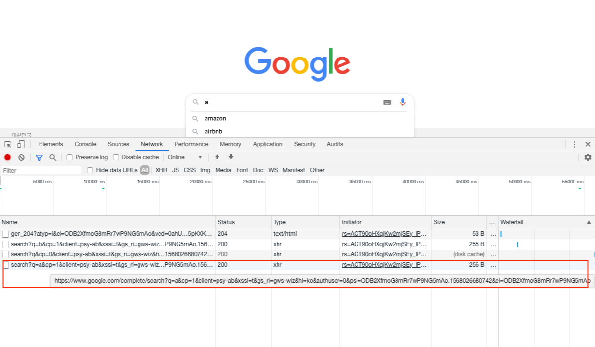 a를 입력할 때, b를 입력할 때 마다 제공해주는 추천 검색어들을 웹페이지를 로드할 때 전부 다운로드한 것일까? 아니다.