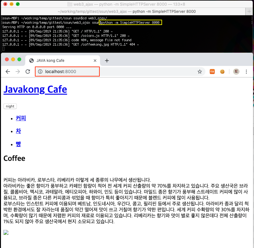 ssun-MBP: ~/working/temp/gittest/ssun/web3_ajax ssun$python -m SimpleHTTPServer 8000