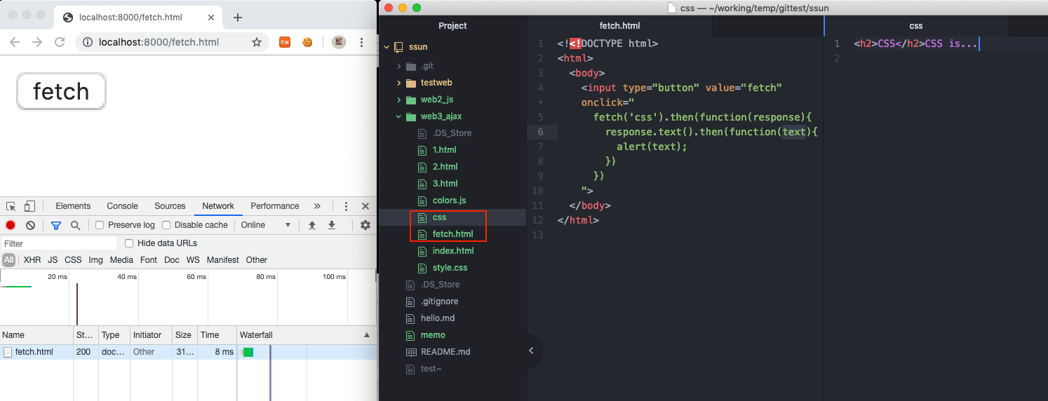 fetch 버튼을 누를 때마다 css 파일을 웹서버로부터 다운받는다.