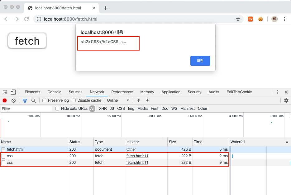 fetch 첫번째 인자로 전달된 데이터(파일)를 서버에게 요청