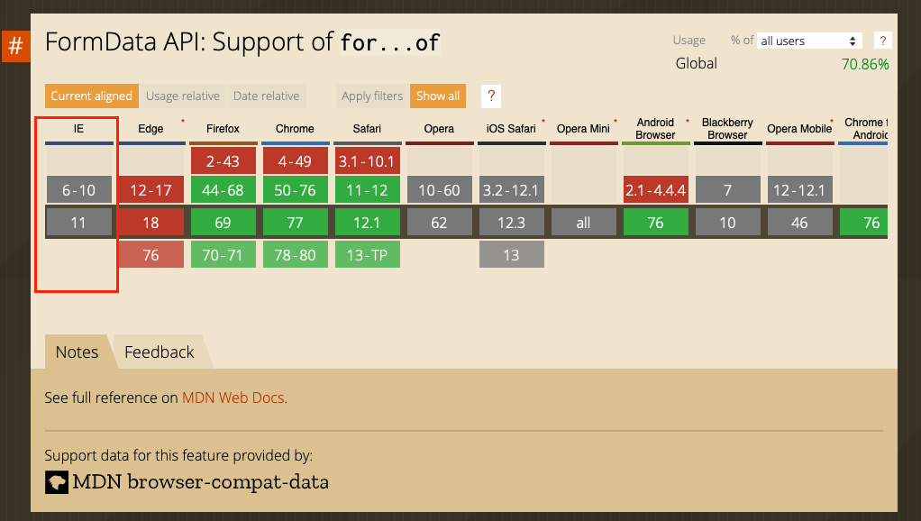 for 문 에러... ';' 잘못 닫은 부분 없어서 for ~ of 문의 브라우저 지원현황 확인