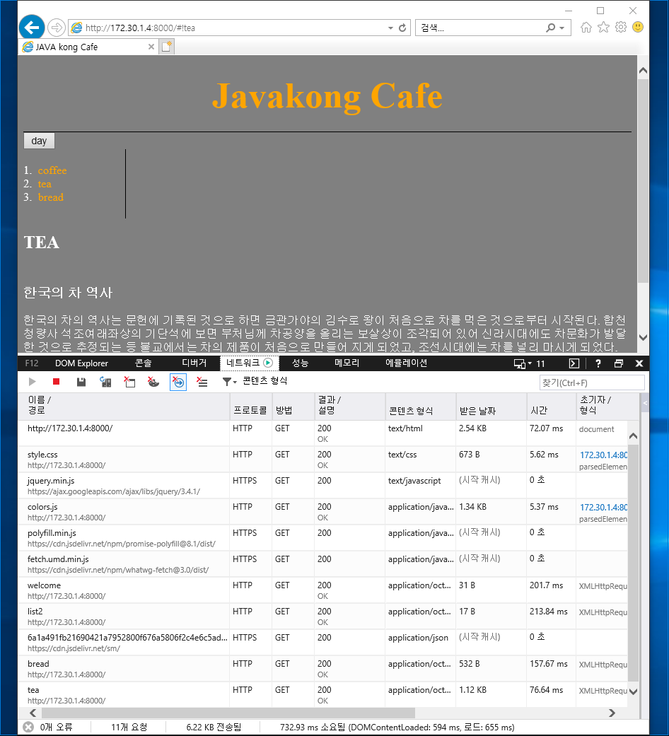 IE 11 버전에서 웹사이트에 접근하면 fetch API를 지원하지 않아 글목록과 본문을 불러오지 못한다.
