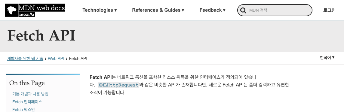 https://developer.mozilla.org/ko/docs/Web/API/Fetch_API