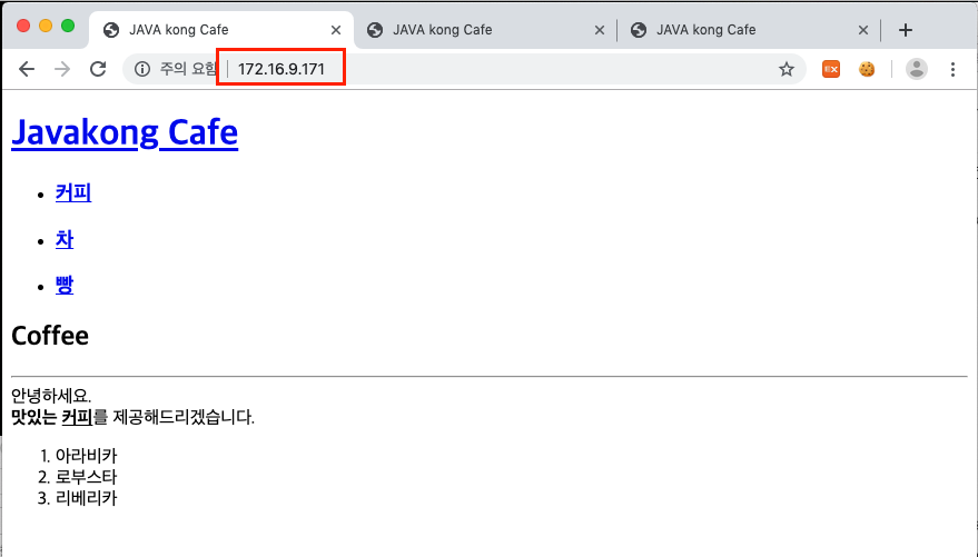 MAC에서 '172.16.9.171' windows IP 주소로 웹서버에 접근 가능