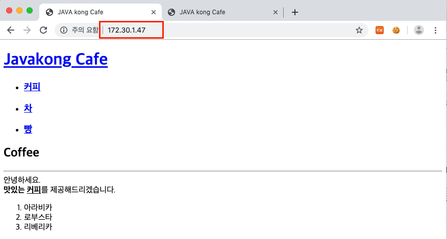 MAC에서 '172.30.1.47' windows IP 주소로 웹서버에 접근 가능