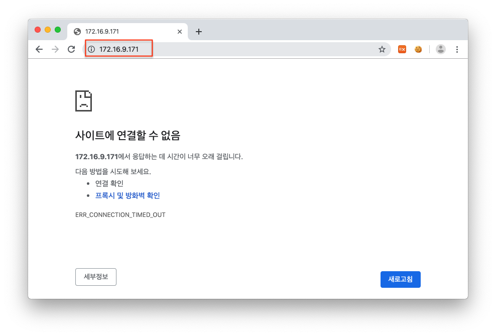 상황 : MAC(Host OS)에서 VM웹서버로 접근 시 에러 발생