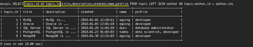 INSERT INTO `author` VALUES (1,'egoing','developer');