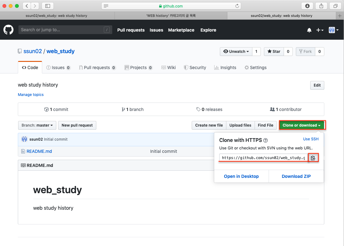 저장소를 복제해올 목적지 경로 선택. (빈 디렉토리여야 한다.)