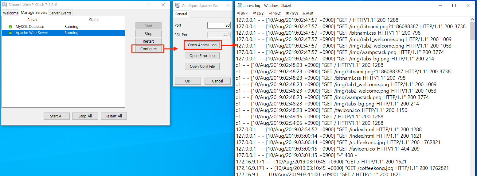 웹서버에 사용자가 접속할 때마다 이 파일에 접속 기록이 한 줄씩 추가된다.