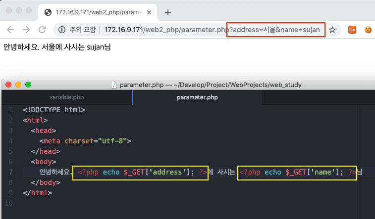 우리가 만들고 있는 애플리케이션은 parameter.php 라는 이름을 갖고 있는 애플리케이션이다.