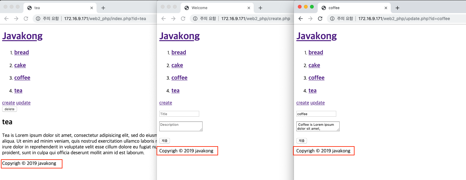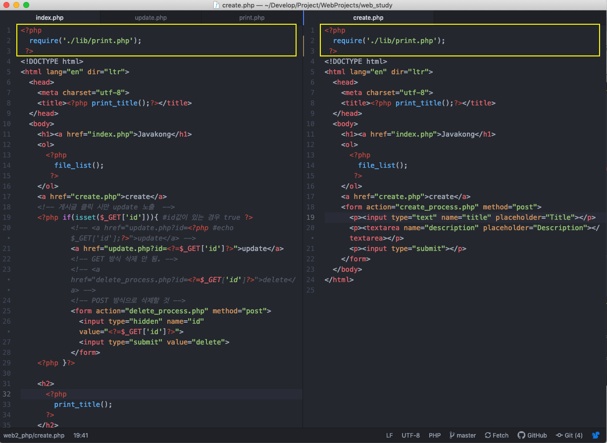 index.php 와 create.php 에 함수를 정의하는 부분이 중복