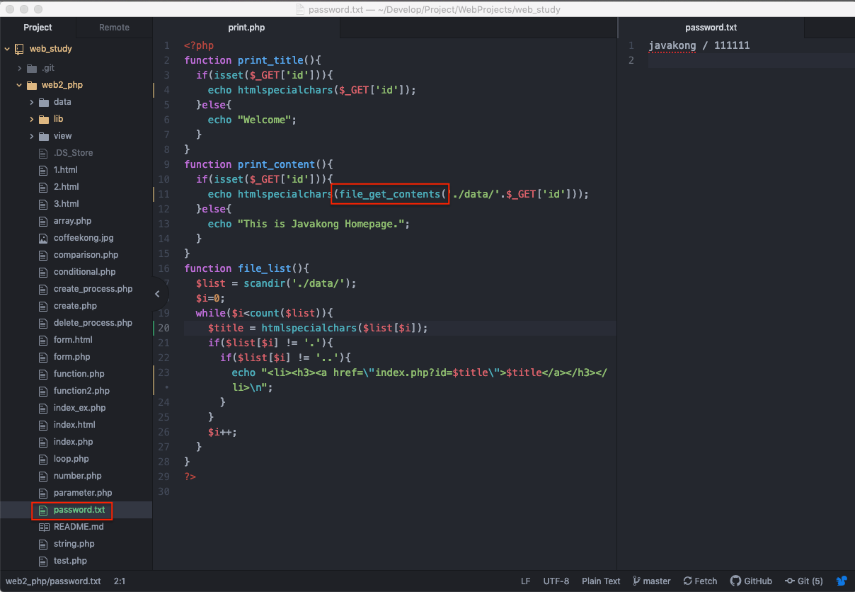 루트에 계정정보가 저장된 password.txt 파일을 가지고 있다고 하자