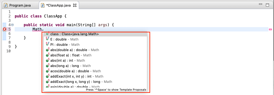 클래스명을 입력 후, 점(.)을 찍으면 해당 클래스에 소속되어있는 변수와 메소드 리스트를 보여준다.