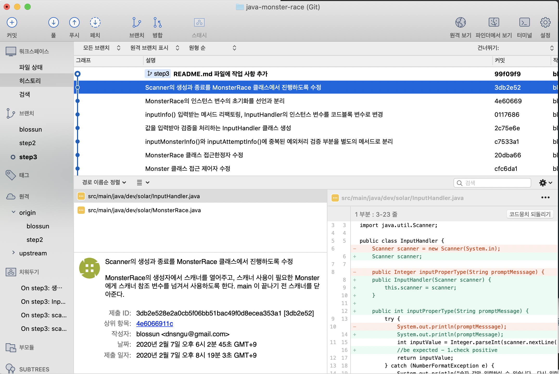 현재 마지막 커밋 바로 이전의 커밋 메시지를 잘못 입력하였다. (스캐너 관련 리팩토링 작업내용인데 이전 커밋메시지와 동일하게 적음)