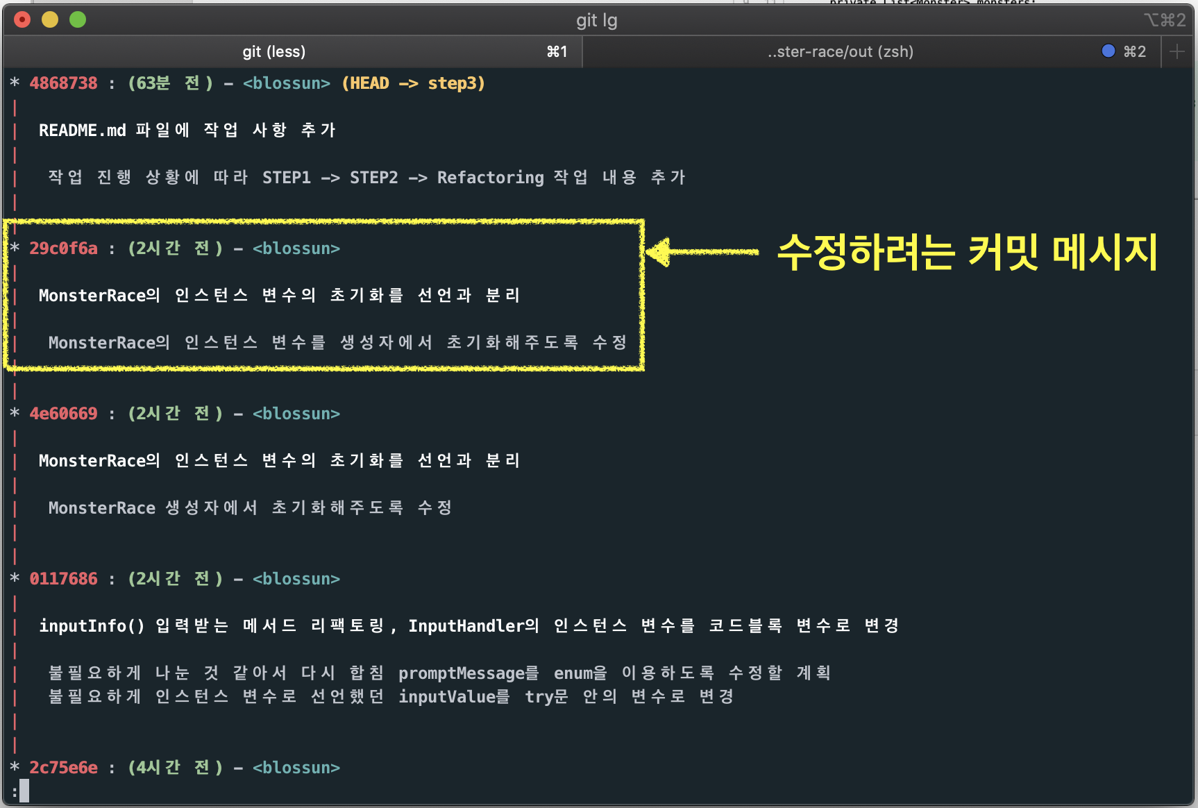 아래 명령을 실행하고 커밋 메시지를 수정한다.