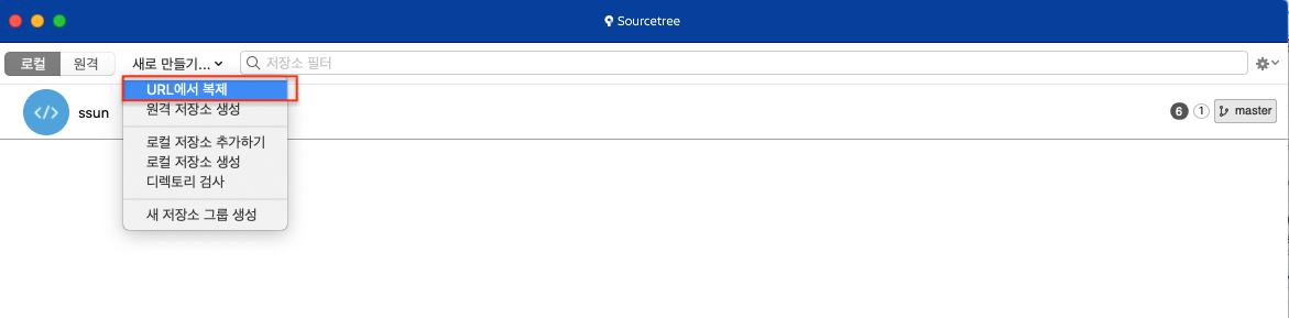 Sourcetree 북마크에서 연결된 저장소 정보를 확인할 수 있다.